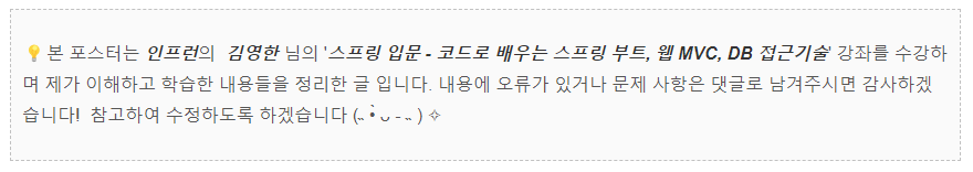 | [Spring 입문하기] Section 06. 스프링 DB 접근 기술 (0) | 2024.01.25 |
